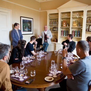 In het hoofdgebouw genoten wij van de masterclass tasting. Van Spirit, Oloroso en Pedro Ximinez belandden wij bij The GlenDronach 12Y, 15Y, 18Y, 21Y en we eindigden met The Glendronach Vintage Aged uit 1989! Wat een smaakexplosies. Volle, krachtige, rijke, robuuste maar ook sherry-achtige en fruitige single malts. Na een warme lunch in de zijvleugel was het tijd om afscheid te nemen. We vertrokken met veel whisky verhalen en kennis, maar ook met een bijzondere fles: The GlenDronach Cask Strength Batch 12 Y Highland Single Malt Whisky met een alcoholpercentage van maar liefst 58,2%.