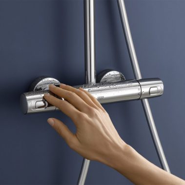 GROHE, onderdeel van LIXIL, lanceert de GROHE CoolTouch® technologie voor hun douchesystemen. Met het Euphoria CoolTouch douchesysteem wordt het kraanoppervlak nooit warm tijdens het douchen. Met deze technologie wordt het hete water in de kraan omspoeld door koud water. Een speciale verbinding bij de warmwateringang van de thermostaat zorgt ervoor dat het hete water niet direct in contact komt met het verchroomde kraanoppervlak. De Euphoria CoolTouch is hierdoor extra veilig, omdat verbranding aan hete oppervlakten is uitgesloten. Dankzij het FastFixation-systeem met verstelbare wandbevestiging kan de douche snel en probleemloos worden geïnstalleerd. Daarnaast heeft het nieuwe douchsysteem een slanker ontwerp en opties om te personaliseren.
