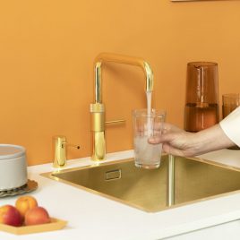 De kokendwaterkraan en mengkraan zijn gecombineerd in de Quooker Fusion. Koud, warm en kokend water komen gewoon uit één, eenvoudig en veilig te bedienen kraan. Verguld met een laagje 24 karaats goud is de Quooker goud het zonnetje in huis. Een even decoratieve als praktische keuze voor in de keuken. De Quooker goud is verkrijgbaar als Fusion Square en Fusion Round, oftewel als mengkraan met een strakke rechte of sierlijke ronde uitloop. De mengkraankop is uitgevoerd in matgoud, wat de kraan een subtiel accent geeft. Ook de bijpassende zeeppomp is verguld verkrijgbaar. De Quooker Goud wordt geleverd met PRO3-reservoir of een COMBI of COMBI+-reservoir voor onder het aanrecht. Wil je ook koel bruisend en gefilterd water uit de kraan kunnen tappen? Combineer je set dan met een CUBE. Een gouden kraan is een echt pronkstuk op je aanrecht!