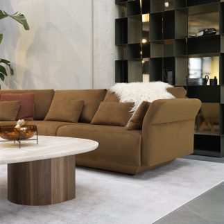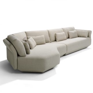 QLIV introduceert Flared, een comfortabele, eigentijdse sofa met een luxe uitstraling, die volledig naar wens kan worden samengesteld en de meest verrassende, niet alledaagse vormen kan aannemen. De sofa bestaat uit losse elementen, met verschillende afmetingen en vormen, die in iedere gewenste opstelling samen één geheel vormen. Kies je voor een rechte sofa, een hoekopstelling of een ruime U-vorm? Met de keuze uit maar liefst 50 elementen kun je onbeperkt combineren en je sofa passend maken voor iedere ruimte, van compacte loft, tot riante villa. Flared dankt zijn naam aan de elegante arm- en rugsteunen, die licht naar buiten knikken. De arm- en rugkussens liggen hier op een natuurlijke manier tegenaan, waardoor een gelaagd en speels effect ontstaat. De elementen zijn eenvoudig te koppelen en kunnen, voor de nodige afwisseling, ook als losse delen worden neergezet.