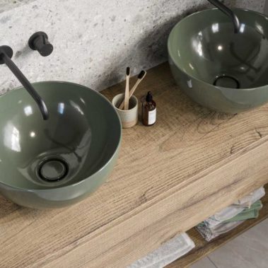 Rond, vierkant of rechthoekig. Primabad heeft een uitgebreid assortiment aan opbouwkommen verkrijgbaar in een verscheidenheid aan materialen en kleuren. Kies voor stralend wit keramiek, mat wit solid surface of stoer beton in 3 kleuren. Maak uw meubel compleet met een HPL wastafelplaat in maar liefst 36 mogelijke kleuren. Ook mogelijk zijn onze maatwerk solid surface, cerablad of beton wastafelplaten. Voor een strakke en moderne afwerking van uw eigen unieke badmeubel. De opbouwkommen zijn te combineren met vrij hangende afdekbladen of op afdekbladen in combinatie met een meubel. Nieuw is de ronde keramische kom in 5 kleuren, waaronder de nieuwe kleuren groen en blauw.
