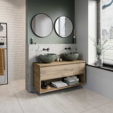 De Blend is er voor iedereen die graag afwijkt van de norm en het avontuur opzoekt. De wastafelkast zorgt voor de speelse “Touch” in de badkamer. Gecompleteerd met een dun Solid Surface blad, opbouwkommen of het strakke keramische wastafelblad geeft het gehele plaatje een volwassen uitstraling. Bij de uitvoering met Alu greeplijsten maakt de optionele LED-verlichting het plaatje compleet. De laden zijn voorzien van sluitdemping en uit te voeren met Tipmatic voor het openen zonder gebruik te maken van grepen of greepprofielen. Ook is er de optie de laden asymmetrisch uit te voeren. Het BLEND – meubel van PRIMABAD is leverbaar in keramiek, Solid Surface en opbouwkommen. Er zijn 5 breedtematen (60-80-102-122 en 142 cm), 33 decor en 7 special corpus -en frontkleuren. Nieuw is het keramisch wastafelblad in162 cm. breed met of zonder kraangaten en met een ruime afzetruimte tussen de waskommen.