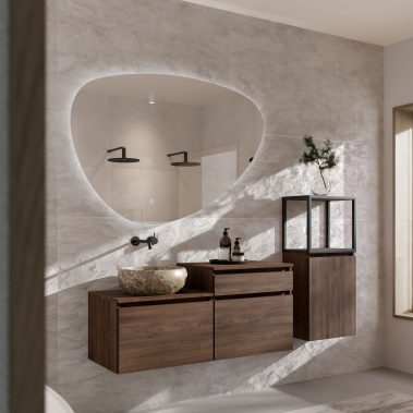 Maak een statement met een prachtig Thebalux badkamermeubel voorzien van Bursa opbouwkommen van Emperador Marmer. De marmeren opbouwkommen zijn verkrijgbaar in bruin marmer en grijs marmer. De unieke marmerstructuur, kenmerkend voor Emperador Marmer, is mooi terug te zien in de opbouwkommen. De Bursa opbouwkom is uitstekend te combineren met een van de vele badmeubelkleuren die Thebalux te bieden heeft. Op de afbeeldingen is de opbouwkom gecombineerd met de effen kleur Muddy, de warme houtkleur Sequoia en de donkere kleur Nero.